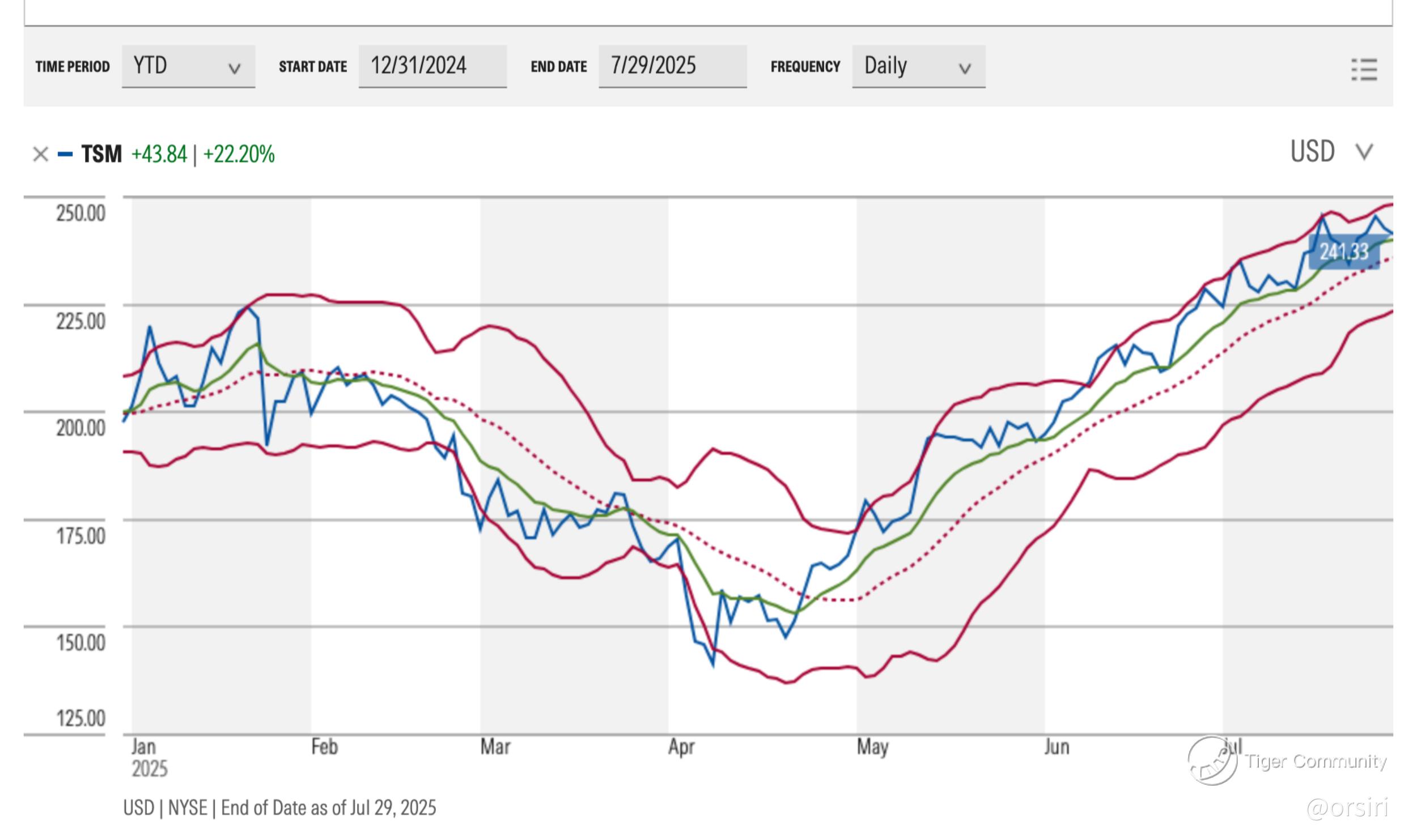 YTD: TSMC flirts with upper Bollinger band after sharp recovery