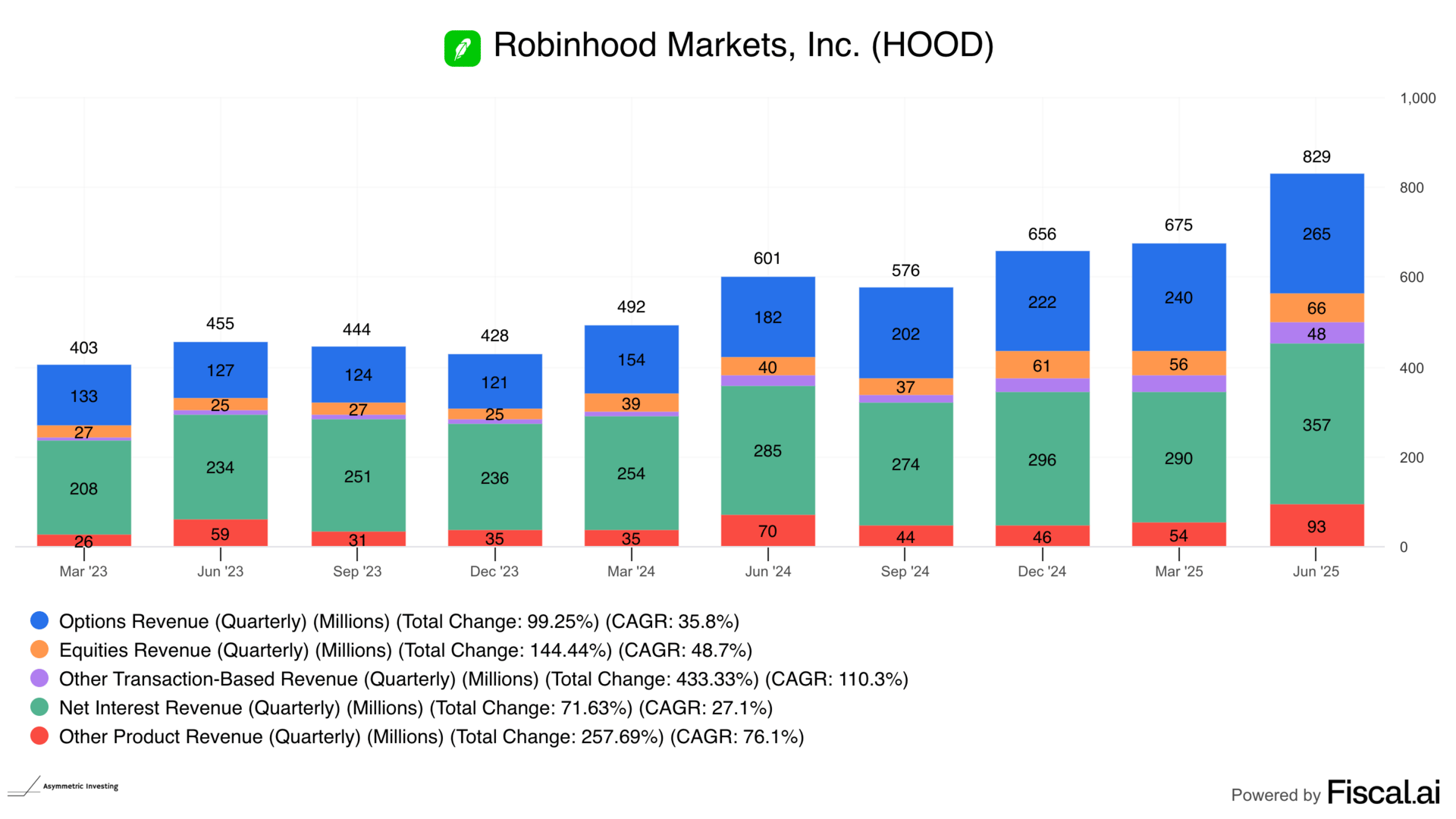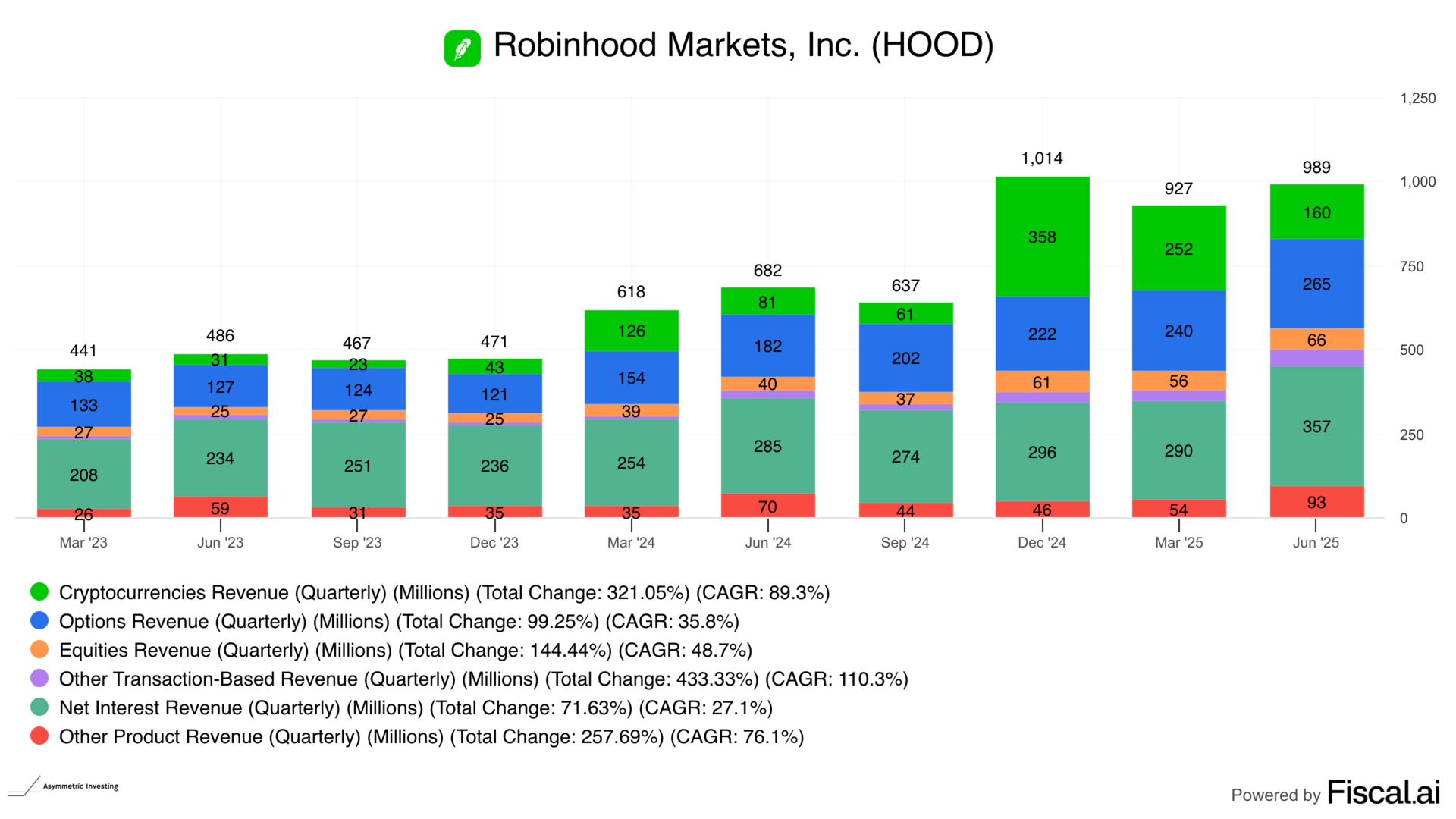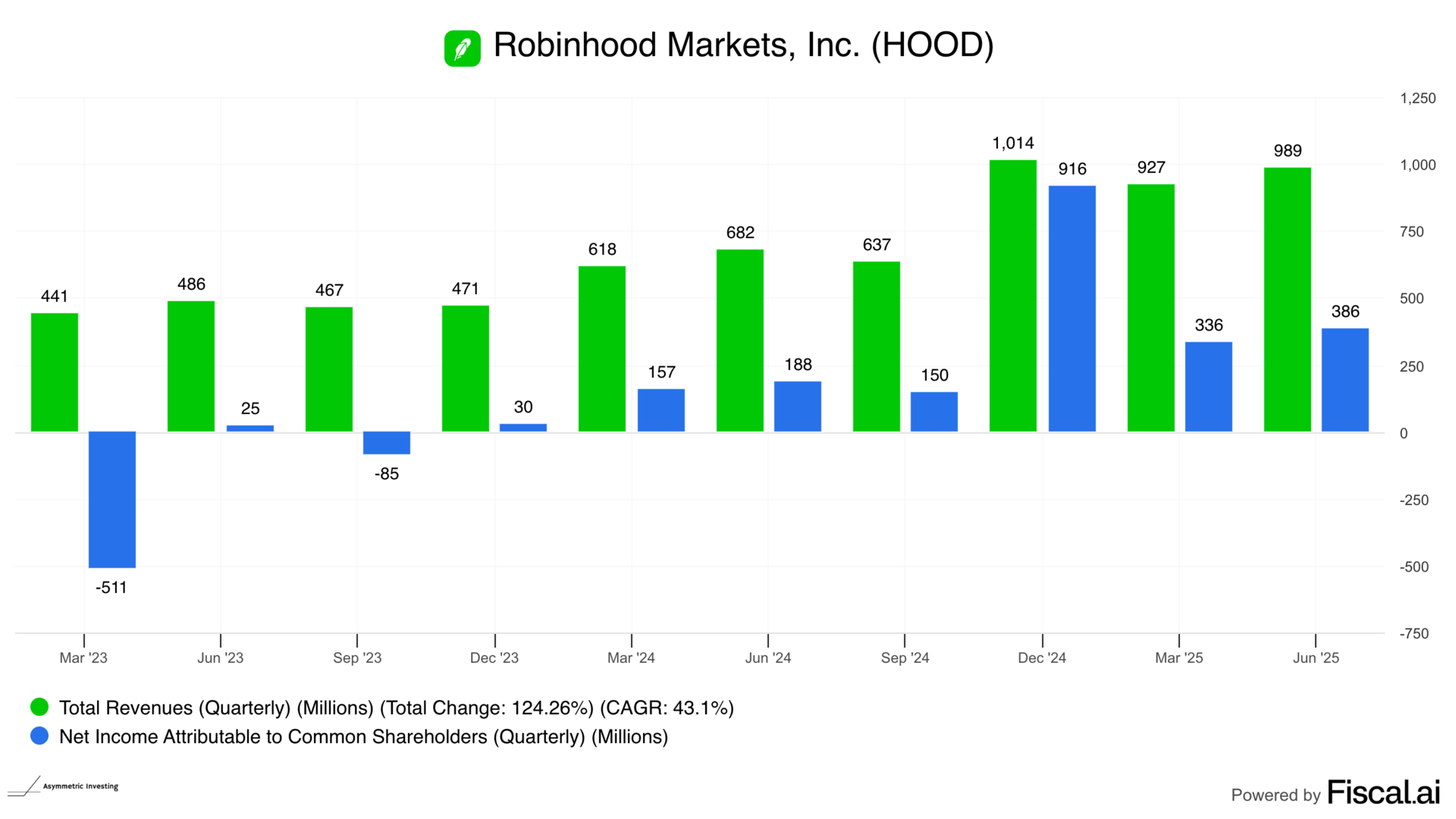 Over at $Robinhood(HOOD)$ , revenue growth was an impressive 45% from a year ago, but down since Q4 2024.