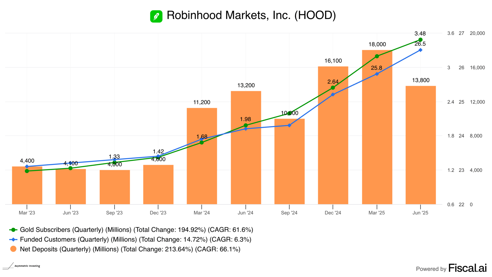 What I’m more concerned about is the growth of customers, deposits, and Gold subscribers. And while I would like to see funded customers increasing faster, this growth in deposits and Robinhood moving up market, along with its cohort of users, is impressive.