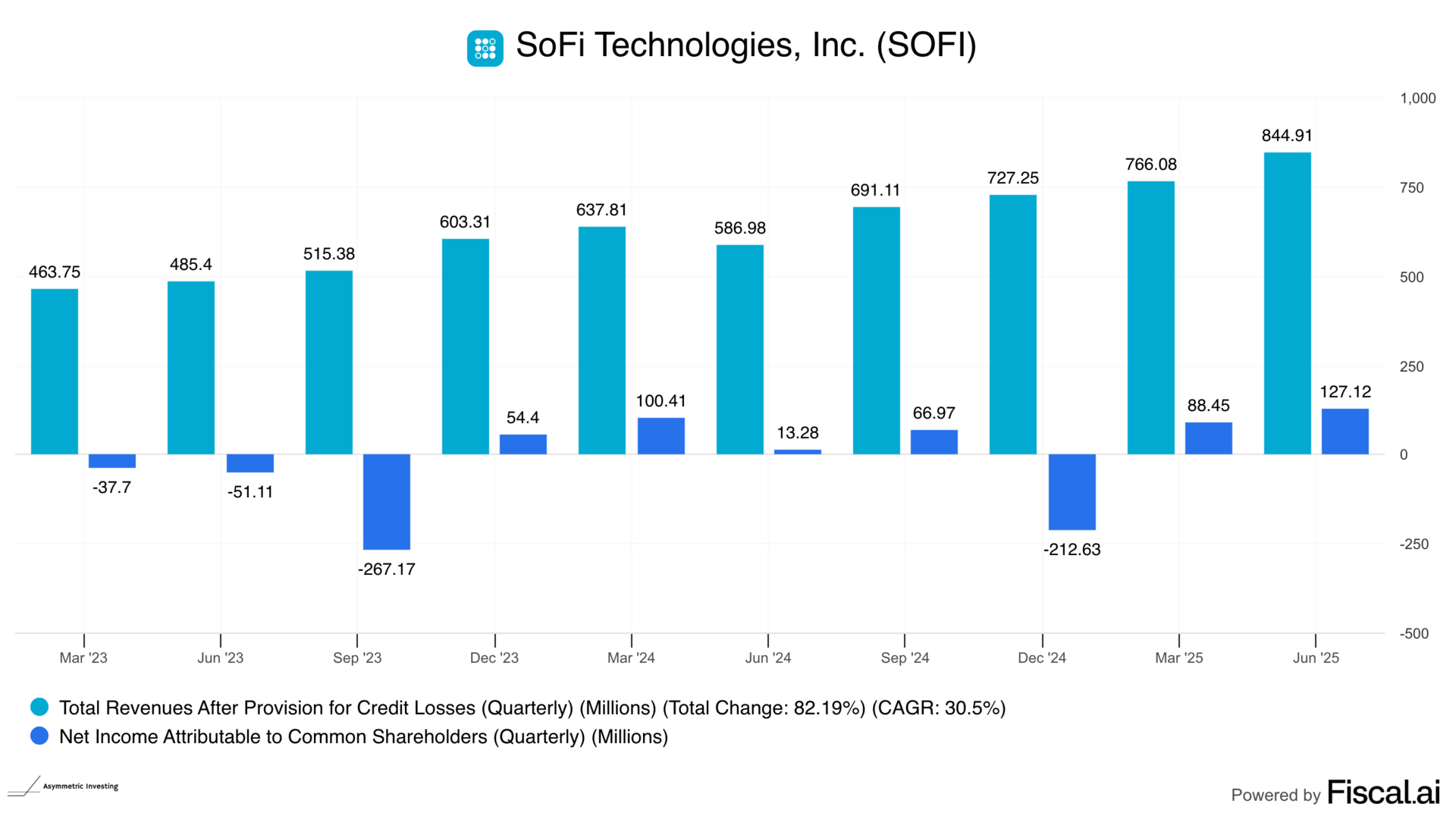 Q2 was steady as it goes for $SoFi Technologies Inc.(SOFI)$ . The company reported a 44% increase in adjusted net revenue to $858 million, an 81% jump in adjusted EBITDA to $249 million, and earnings per share of $0.08.