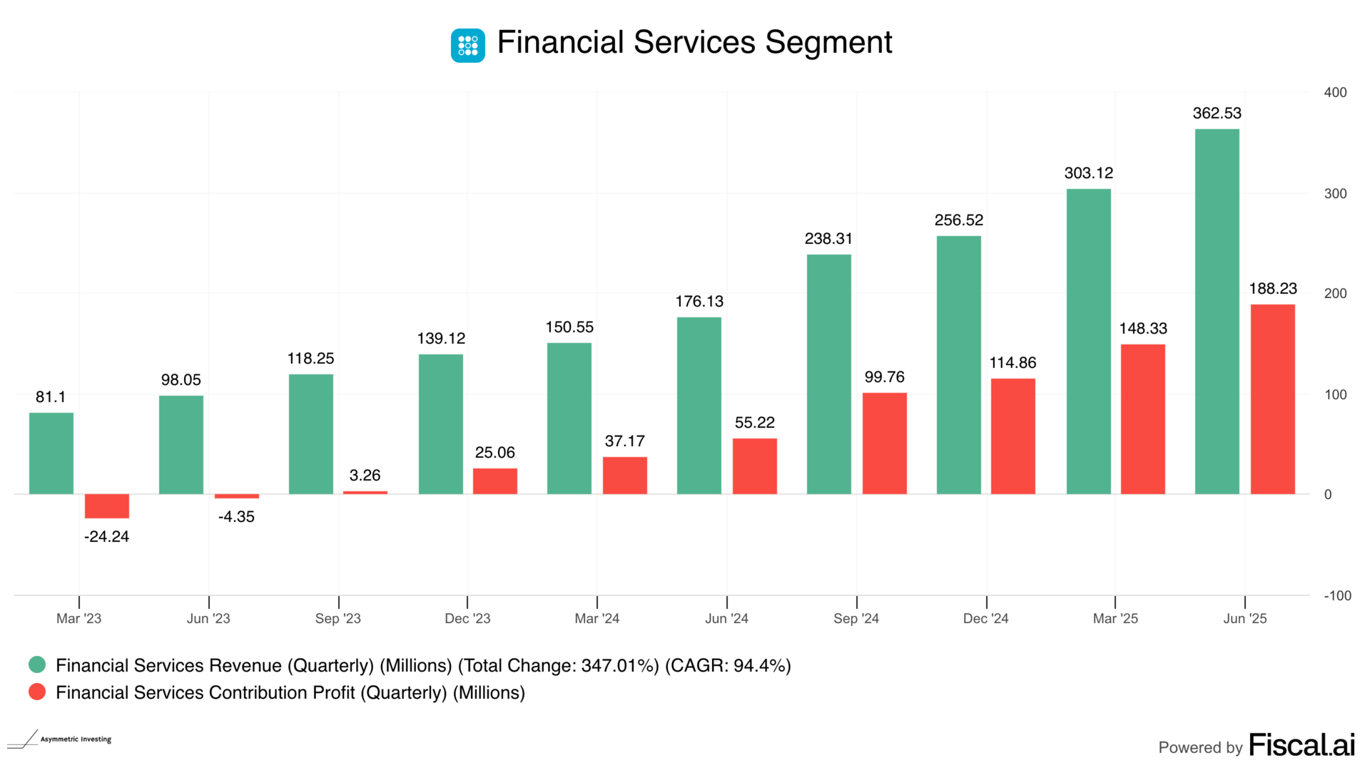 The high flyer is in financial services. You can see that the segment is growing in excess of 100% and is highly profitable. As I mentioned, this includes loan fees from LPB and things like credit card fees and stock and crypto trading fees.