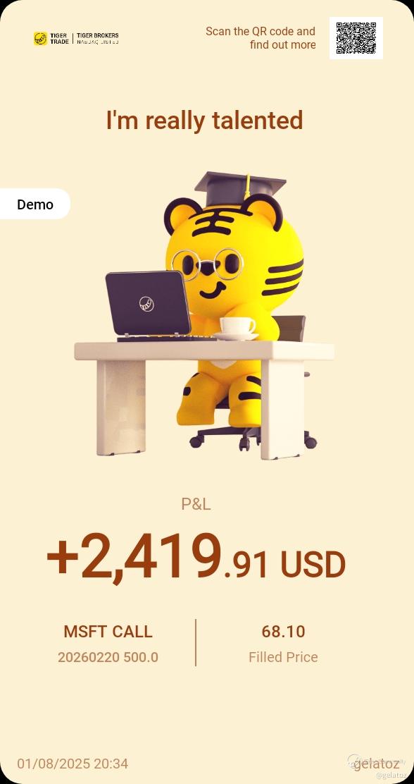 $MSFT 20260220 500.0 CALL$ I sold yesterday. Refer to history beat earning and consistent profitability , I bought CALL a couple weeks before earning date.