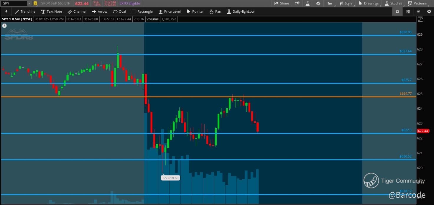 Adding to the pressure, $SPY tagged the $622.30 Dark Pool level once again, failing to reclaim it during the bounce. 📉🟥 That bounce aligned almost perfectly with SPX’s Mean Volatility Center (MVC) at $6,250, which was tapped during the sharp drop on 0DTE gamma exposure flows. 🔥