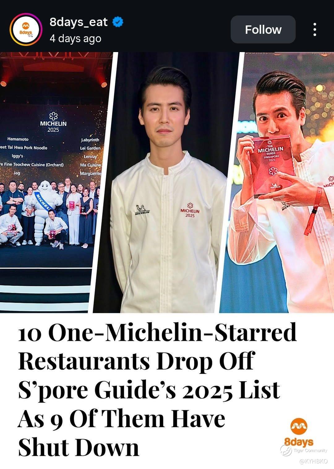 In the news below (8Days), Singapore's Michelin restaurants did not survive. If it is not the quality, is the cost the issue?