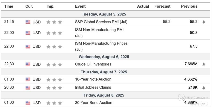 Economic Calendar: Key Market Movers (week of 04Aug25)