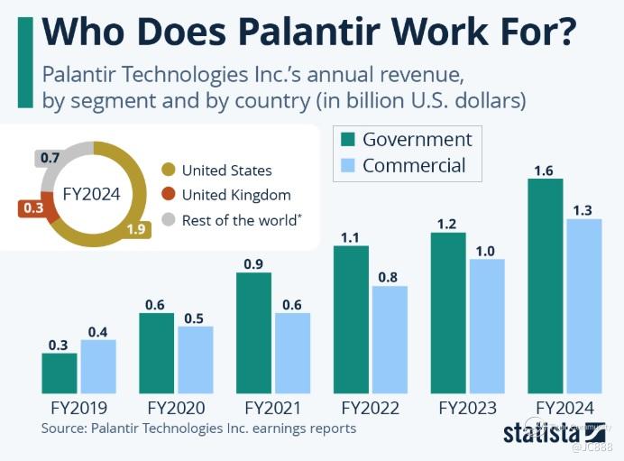 Above ‘self-explanatory’ chart by Statista, successfully captures where PLTR’s money is coming from.