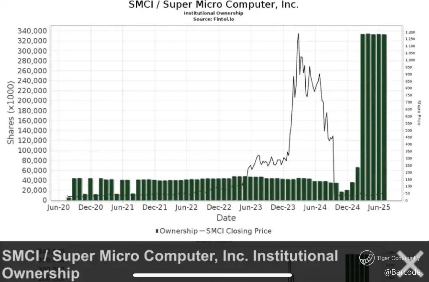 Just look at institutional behavior. Despite $SMCI’s multi-month collapse from over $1,000, institutional ownership has remained steady, even rebounding post-Jan 2025. That’s a powerful signal. They’re not running, they’re reloading.