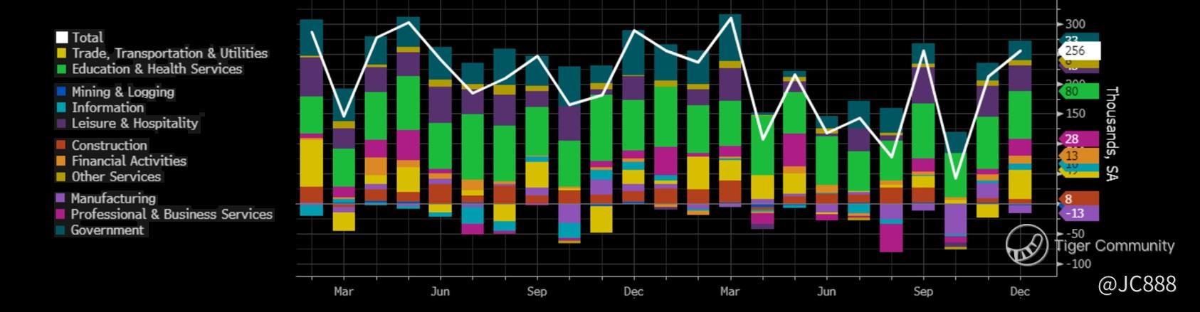 Professional and business services lost -14,000.