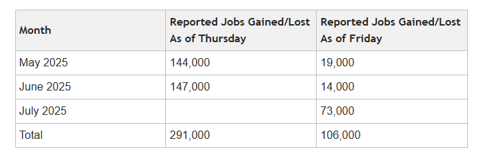 The initial estimates are based on surveys, so BLS needs to extrapolate to the full workforce before a more complete data set isn’t yet available. And if their extrapolation is based on assumptions made in 2024, but the conditions on the ground changed in late January 2025, it would take a few months to show up in the data.