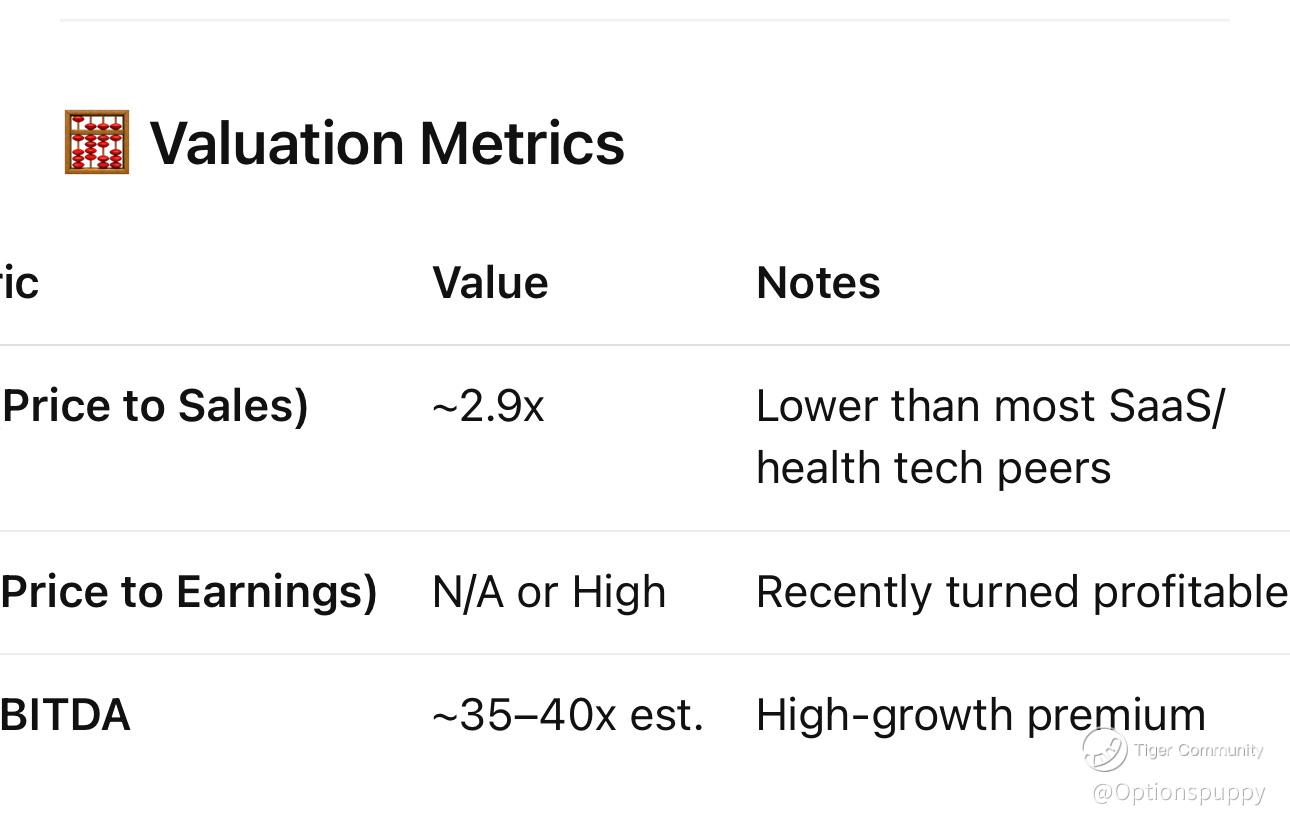 P/S (Price to Sales) ~2.9x Lower than most SaaS/health tech peers