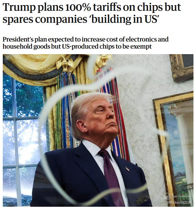 President Trump’s August 2025 announcement — effectively a near-100% tariff threat on imported computer chips not produced in the U.S., coupled with carve-outs for companies that build or commit to build U.S. fabs — represents a radical recalibration of trade leverage into industrial policy. The move is framed as an aggressive attempt to force faster on-shoring of chip production, accelerate the economic benefits of the ongoing AI/semiconductor boom, and extract concessions from trading partners. But it also raises immediate legal, diplomatic and operational questions: how exemptions will be defined, how rules of origin will be applied, and how allied countries will push back.