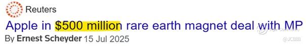 This comes ‘hot’ on the heels of AAPL’s earlier $500 million investment (in $MP Materials Corp.(MP)$) announced on 15 Jul 2025 to secure its supply of made-in-US rare earth magnets. (see above)