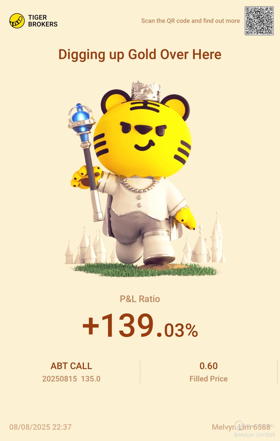 $ABT 20250815 135.0 CALL$ closed for profit. Even though felt there is still room for growth.