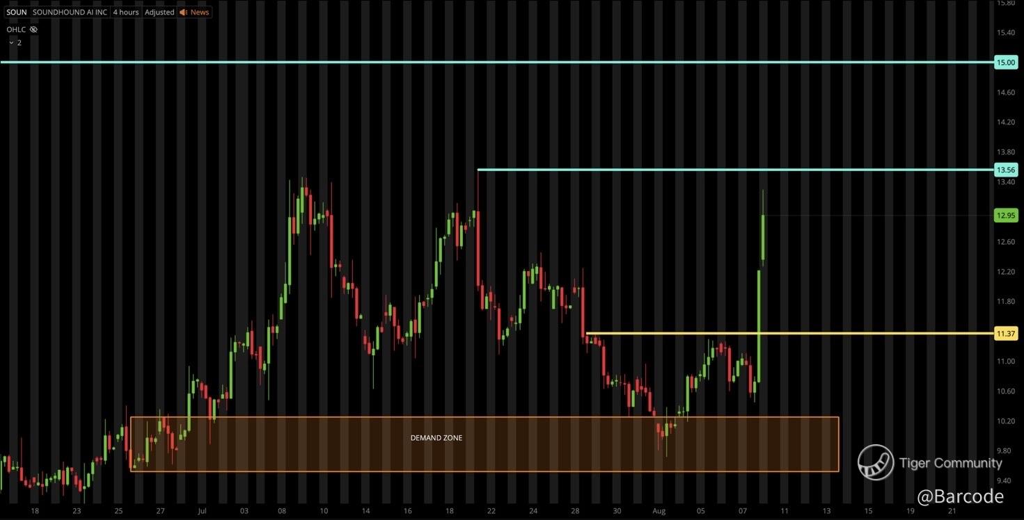 Q2 2025: $42.7M vs $32.9M consensus; FY25 guidance $160M–$178M (up from $157M–$177M). Options flow aggressive; DA Davidson PT $15, Wedbush PT $16. Nvidia-linked names rallied in sympathy: $SOUN +21%, Nebius +7%, CoreWeave +7%, Innoviz +3%.