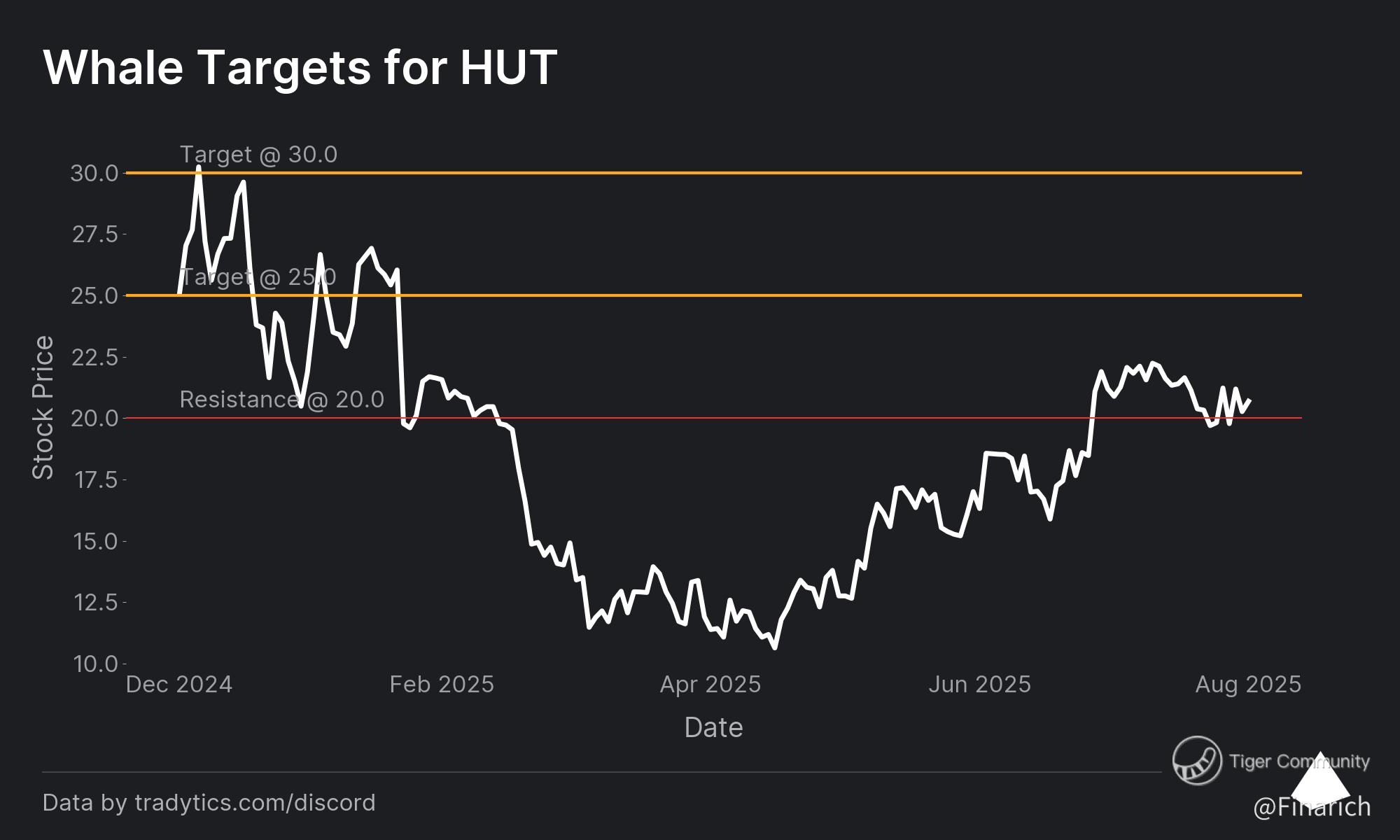 $Hut 8 Mining Corp(HUT)$ Big money is buying $HUT! Noticed major crypto flow coming in, specifically on the 2026 $33 call options. I'm waiting for a potential dip to the $17-$18 range to add more, following the whale targets of $25 and $30. Let's see what happens! [Great]