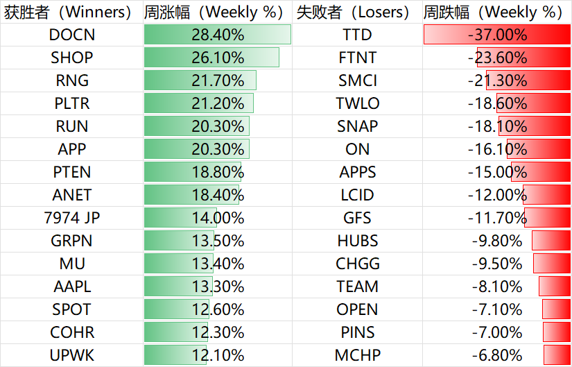 The past week has been very exciting, with a flurry of earnings reports and actual volatility far exceeding expectations (35% of TMT stocks that have reported earnings this earnings season have seen volatility of more than 10%), and the software sector is particularly turbulent.