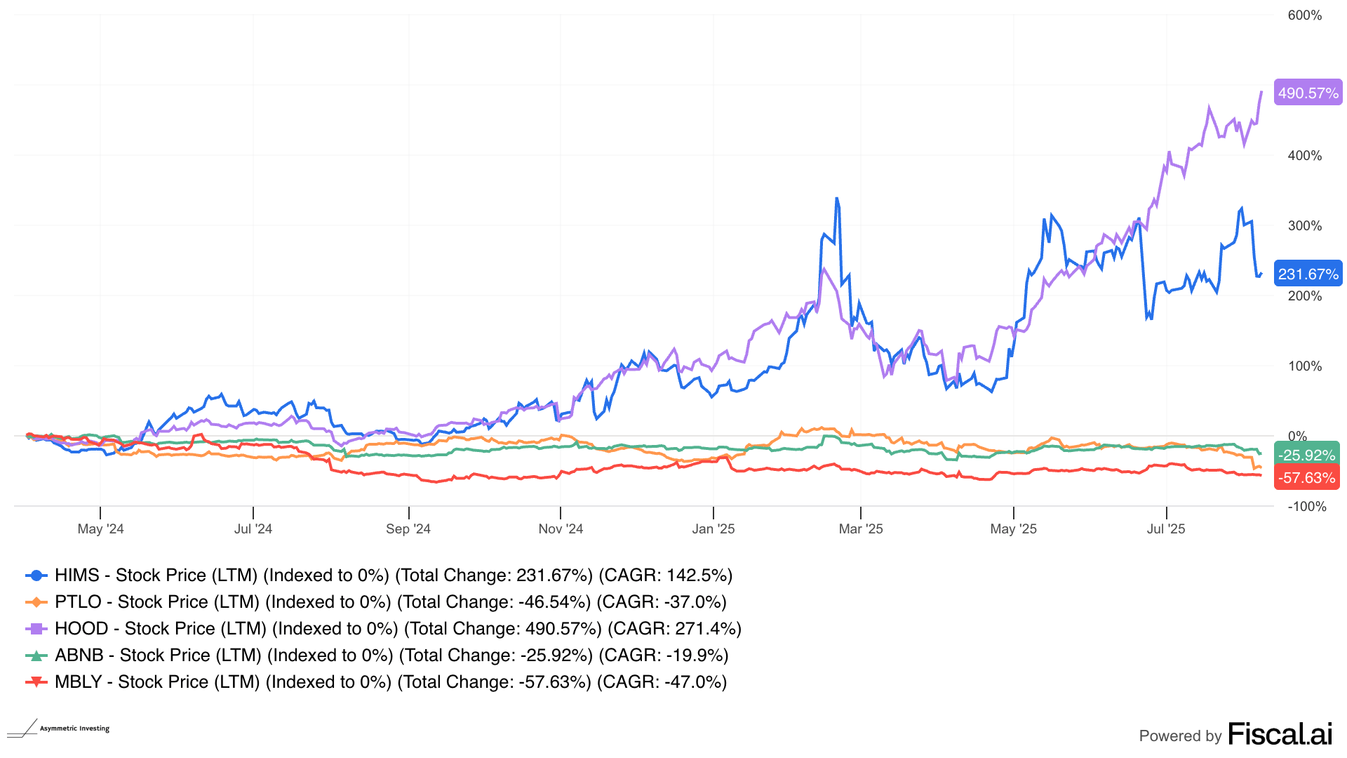 For example, I’ve invested more money in $Portillo’s Inc.(PTLO)$ , $Airbnb, Inc.(ABNB)$ , and $Mobileye Global Inc.(MBLY)$ combined than I have in Robinhood and Hims & Hers. Yet, gains from Robinhood and Hims & Hers have overwhelmed any losses from the others, and even this small basket of five stocks would have outperformed the market over the past two years, with 40% of picks outperforming the market.