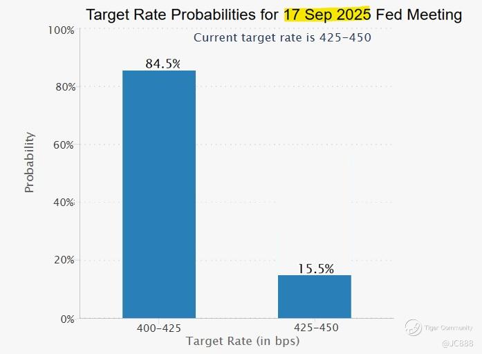 While probability of a 25 basis point cut has risen to 84.5% from July’s 43.2%.