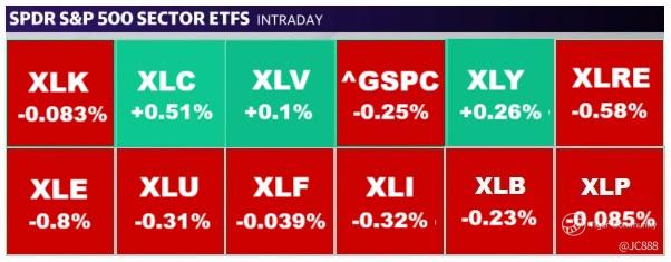 Worst performers: XLE (energy), XLRE (real estate), and XLI (industrial).