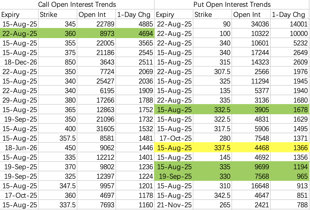 Trades: Selling calls $TSLA 20250815 360.0 CALL$ and selling puts $GOOGL 20250815 200.0 PUT$ .