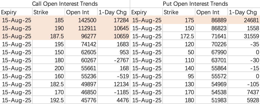 Next week it’s unlikely NVDA will break through 185—expect similar action to this week. Institutions haven’t made big bets on downside for next week, probably because of Jackson Hole on Friday.