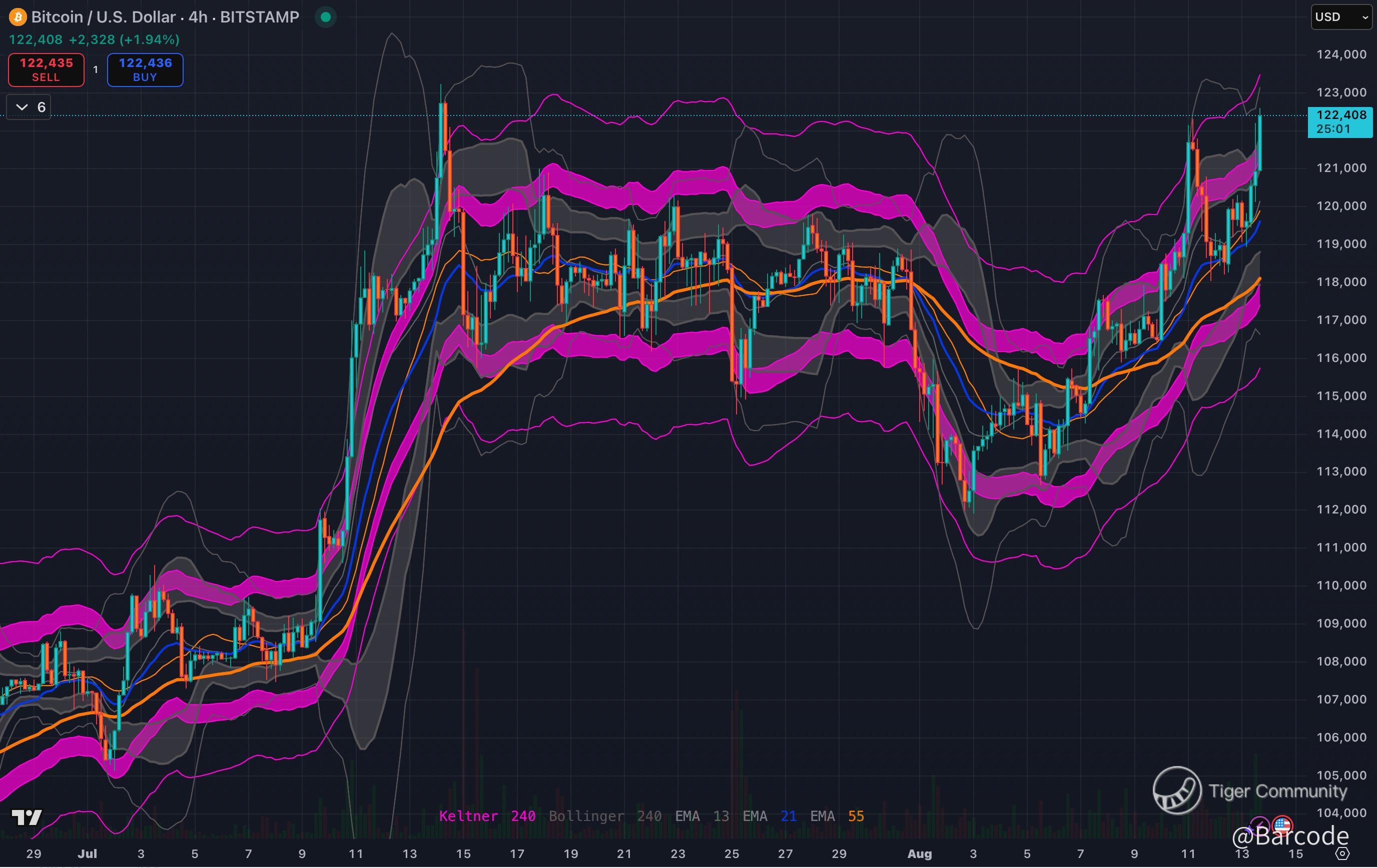 Iβm tactically cautious, because $COIN is trapped between weekly Tenkan and Kijun lines; todayβs textbook Tenkan rejection signals a potential liquidity flush, not a breakout. RSI sits mid-range without bullish divergence; MACD remains stalled just below its signal line, while Ichimoku structure stays neutral, with the price above cloud but capped momentum. Keltner and Bollinger bands are narrowed, implying range compression and imminent volatility squeeze; this isnβt divergence, itβs detachment awaiting direction.