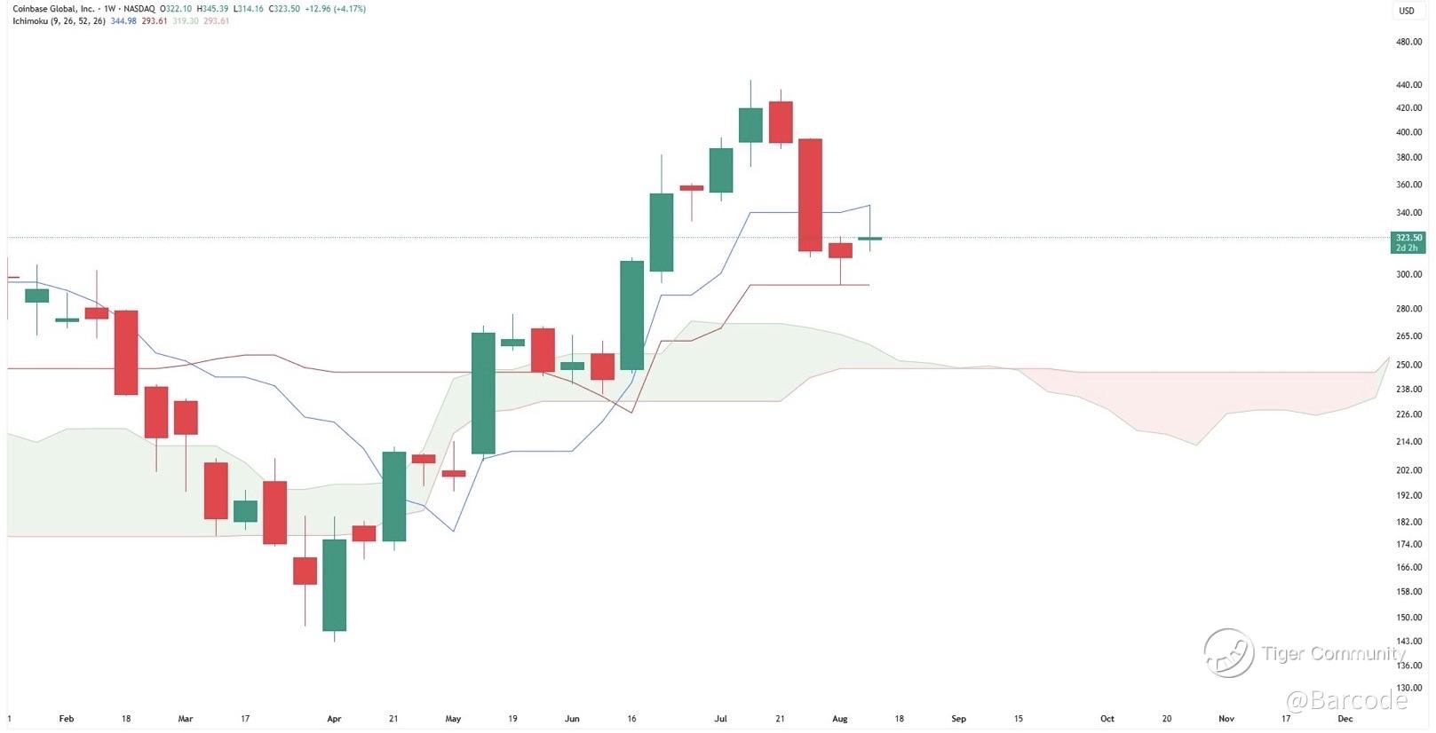 $Coinbase Global, Inc.(COIN)$ π₯ππ₯ Coinbase Rejected at Weekly Tenkan, Yet CalPERS Doubles Down: Bullish Pause or Credibility Reset? π₯ππ₯