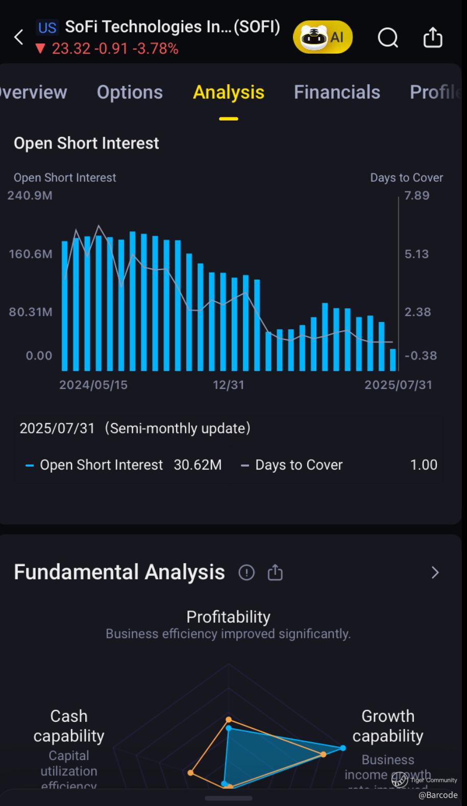- Tui Jude·08-20TOPThe bit about analysts lagging at an average target of 19.74 while $SOFI’s already grinding above 23 really stood out to me. Street models always seem slow to price new fee pools, same thing we saw when $SHOP first expanded services. I’ll be watching open short interest like you noted because that unwind with fundamentals lining up can add fuel.5Report