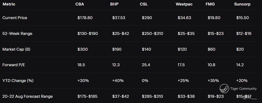 Options Play: Buy $190 CBA calls or $170 puts, $42 BHP calls or $35 puts (August expiry) for 150-200% gains on a 5-10% move.