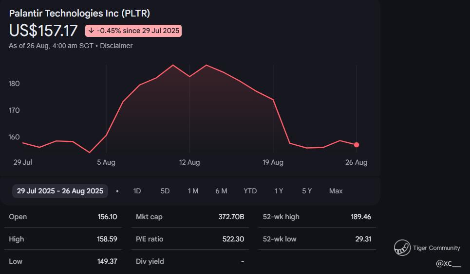 $Palantir Technologies Inc.(PLTR)$ Palantir Technologies CEO Alex Karp has sparked intense debate after offloading more than 400,000 shares, a move disclosed in a recent SEC filing that has the market questioning the company's valuation. Karp sold 409,072 shares at prices ranging from $142.46 to $157.56, pocketing over $60 million amid a stock that's still up 93% year-to-date at $156. With the S&P 500 at 6,466.58, Bitcoin at $115,000, and oil at $75/barrel under 30-35% tariffs, the VIX at 14.49 suggests stability, but Palantir's 18% drop from its $190.50 high raises eyebrows. Does Karp's sale at $142-$157 hint at overvaluation, or is this a chance to buy the dip? This in-depth look explores the sale's implications, market sentiment, technicals, and strategies to decide: short for quick wins or hold for long-term gains.