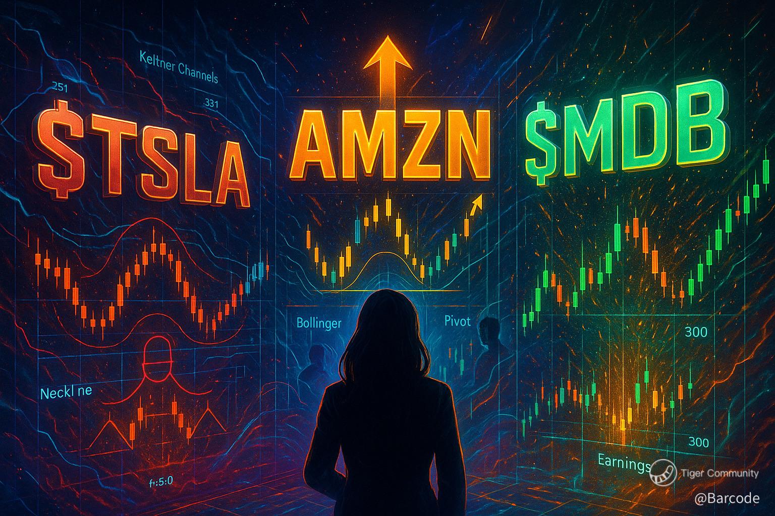 $Tesla Motors(TSLA)$ $Amazon.com(AMZN)$ $MongoDB Inc.(MDB)$ Iβm convinced this week sets up a defining moment for Tesla, Amazon, and MongoDB. I see Tesla pressing right on the neckline that decides whether it breaks lower into the $300s, Amazon coiling at the edge of a bullish breakout, and MongoDB exploding higher on blowout earnings. These are not casual levels; they are inflection points that will dictate the next major move.