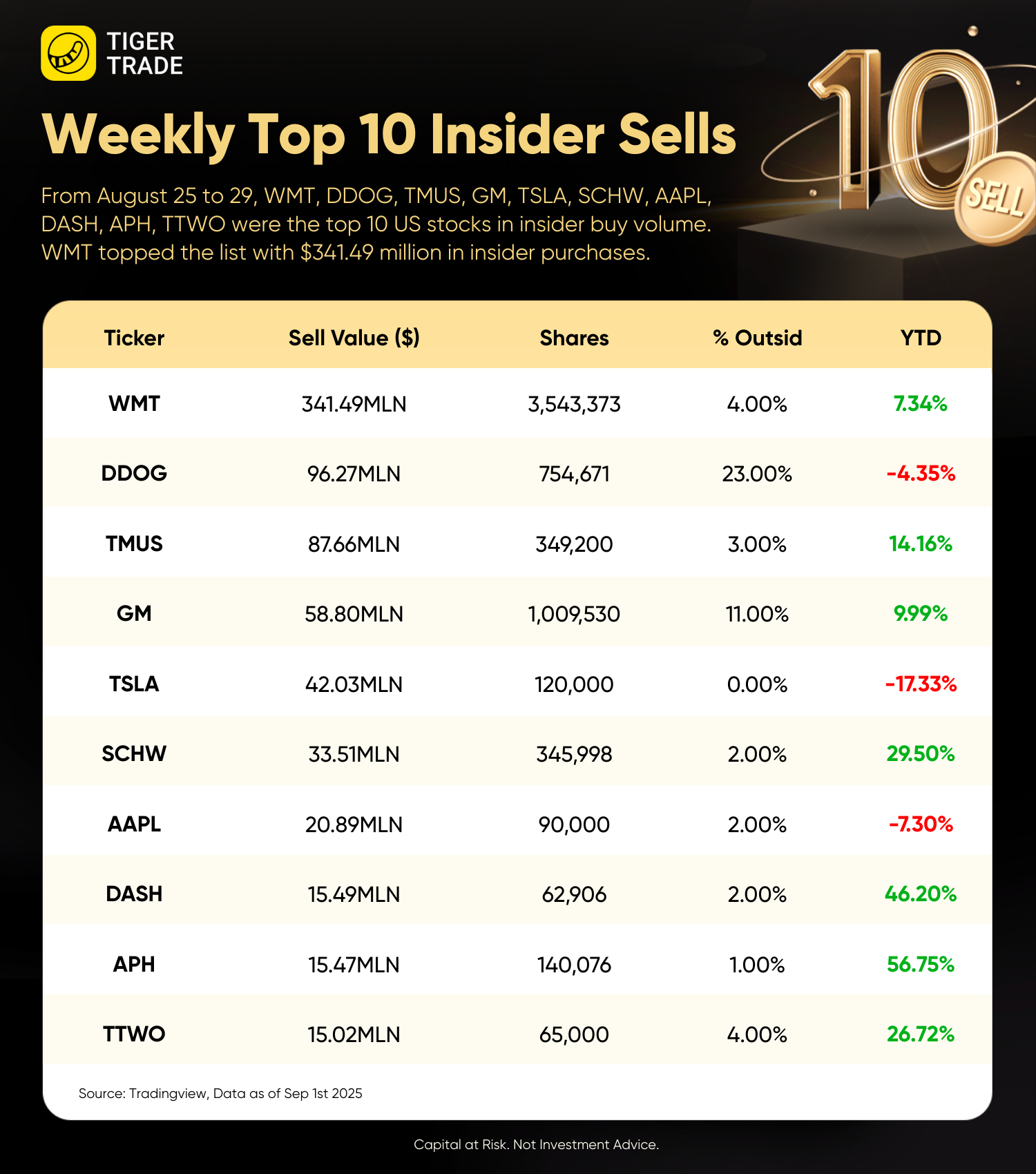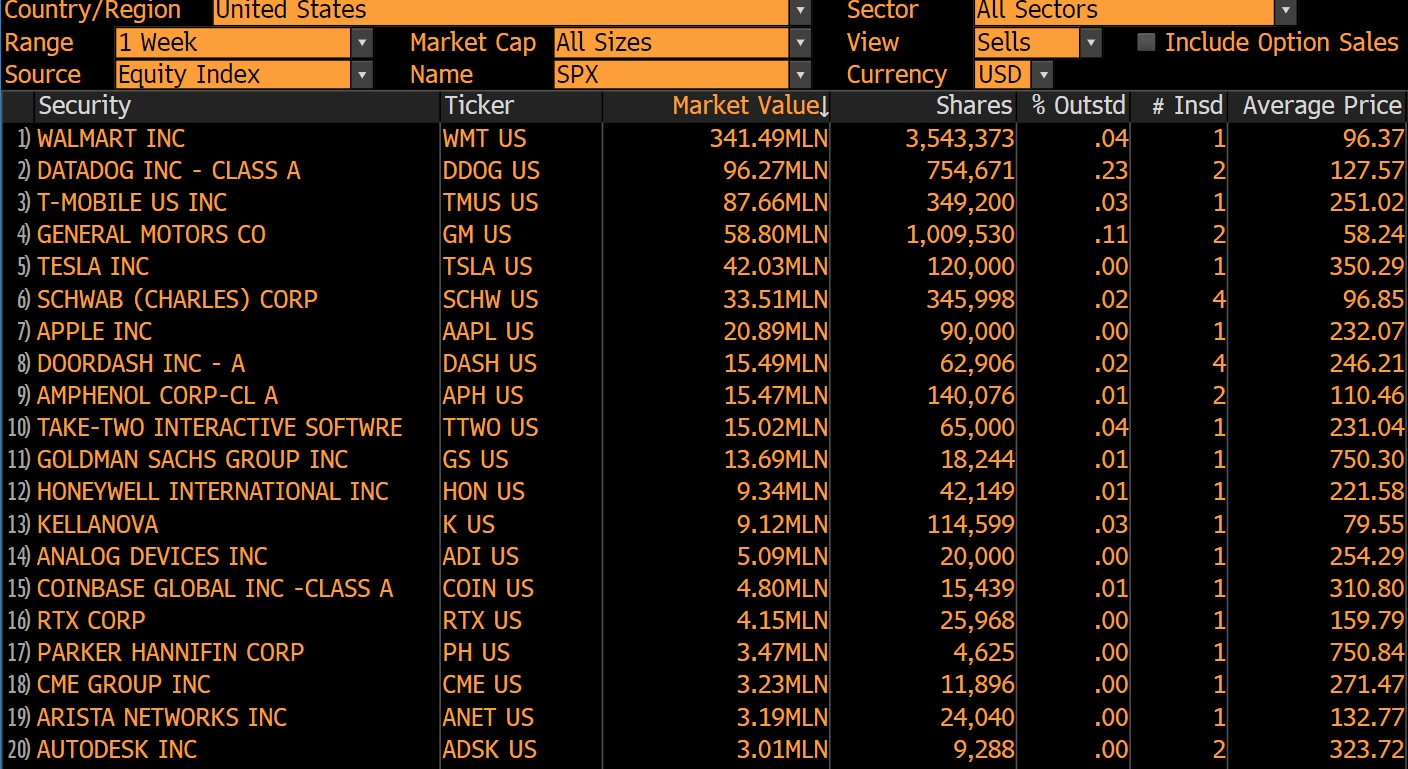 👇🤔Weekly Top 20 Insider Sells: WMT, DDOG, TMUS & More