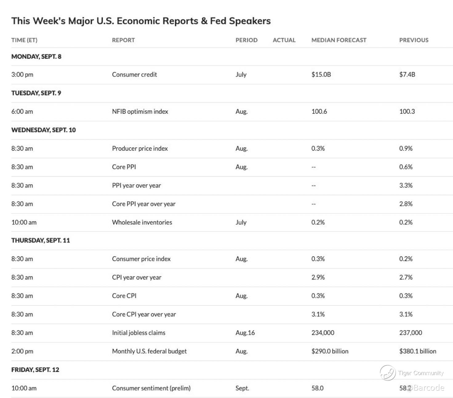 Wednesday 10Sep25: US PPI at 8:30 a.m. ET; the first inflation read of the week.