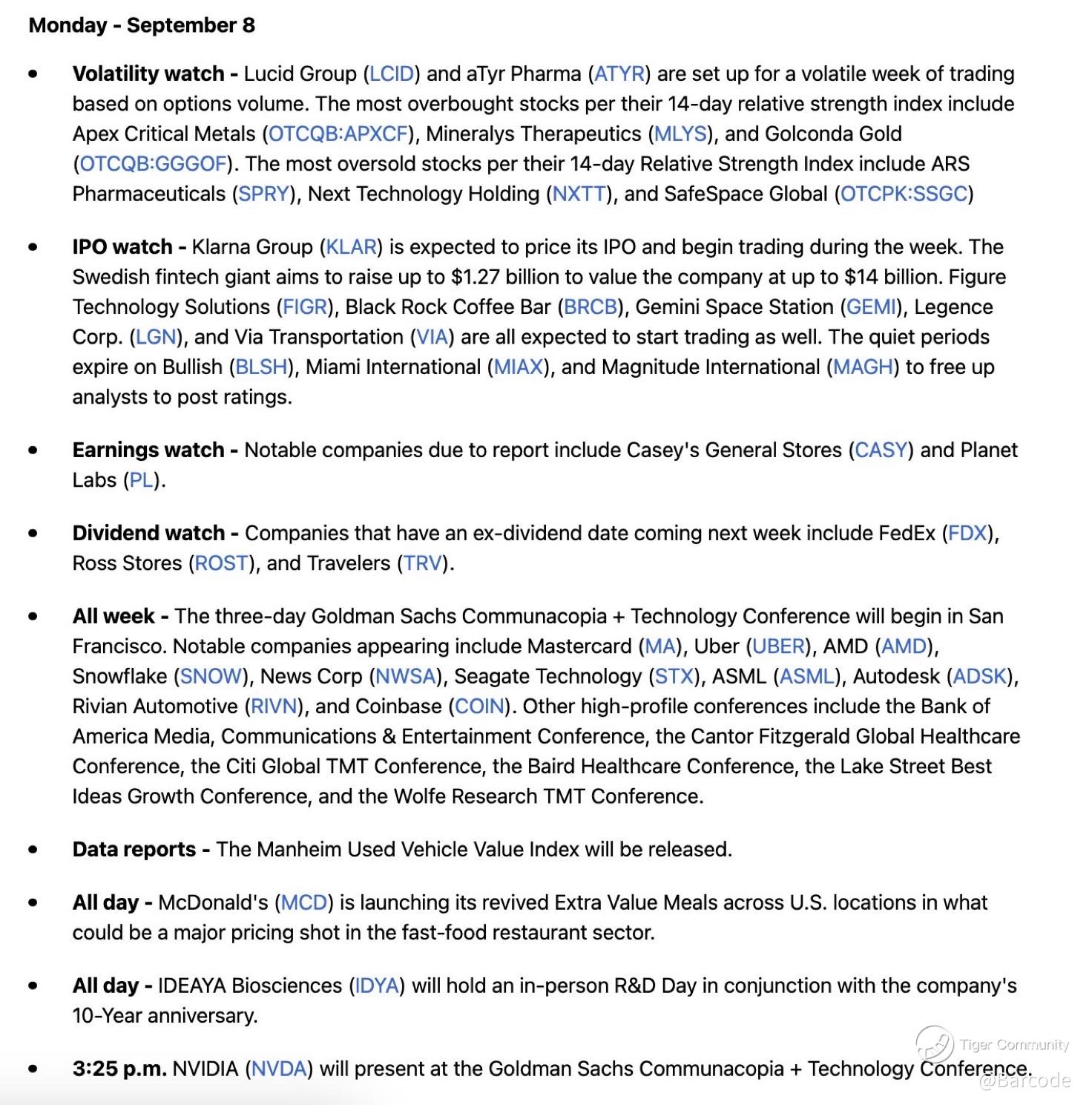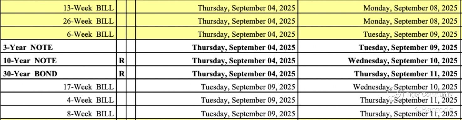 Treasury auctions add fuel: 3-Year Tuesday, 10-Year Wednesday, 30-Year Thursday, alongside regular bills. Iβm expecting duration-sensitive factor whipsaws around the 10-Year; weak demand would pressure long end yields and compress multiples in high-duration tech.
