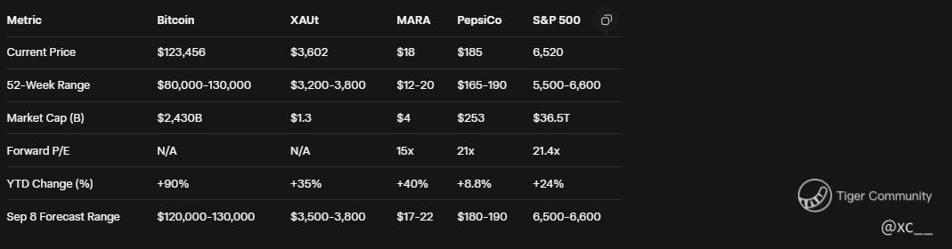 On September 8, 2025, Tether’s “We buy and hold both” stance aligns with a 6,520 S&P 500 and $123,456 Bitcoin rally. A 5-10% Bitcoin rise to $130,000-$132,000 is possible today if buys confirm, with $150,000 (21% upside) by year-end if momentum builds. A 5-10% dip to $110,000-$118,000 threatens if sentiment shifts, with $100,000 support. XAUt could hit $3,900 (8% upside) if gold trends hold, with $3,400 as a floor. The dual strategy reshapes the game—seize the trend or hedge wisely. Your call?