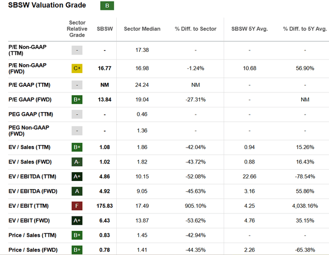 Now, what I also like about SBSW is its valuation. Yes, Sibanye Stillwater stock is up big over the past few weeks with the better outlook and rising underlying prices on the firm's key selling products they mine. But SBSW stock is still valued reasonably, trading at a 30-40% discount on most forward multiples, according to Seeking Alpha data: