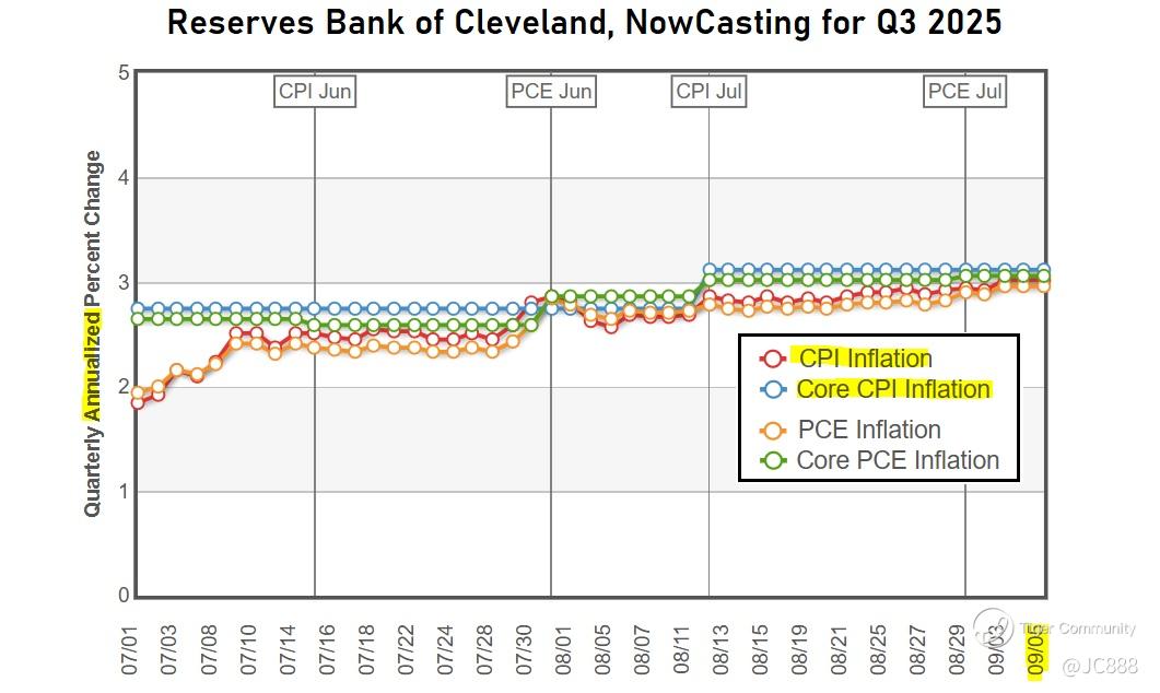 Below is Cleveland Fed’s latest CPI forecasts for August 2025, last updated on 5 Sep 2025: