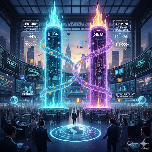 As the sun rises on September 12, 2025, the Nasdaq’s trading floor pulses with an electric undercurrent, not from the usual suspects like AI behemoths, but from two crypto-native upstarts rewriting the rules of finance. Figure Technologies (FIGR) made its electrifying debut yesterday, shares rocketing 44% from a $25 IPO price to open at $36, settling around $32 for a $7.6 billion valuation after raising $787.5 million.   Today, Gemini (GEMI), the Winklevoss twins’ crypto exchange powerhouse, prices its IPO at $24-$26 per share—up from an initial $17-$19 range—aiming to haul in $425 million at a $3.1 billion valuation, buoyed by Nasdaq’s audacious $50 million strategic stake.   This isn’t a fleeting crypto craze; it’s a meticulously orchestrated convergence, where blockchain’s immutable ledgers entwine with Wall Street’s algorithmic precision, potentially unlocking a $10 trillion hybrid asset class. In an age of Fed rate cuts and Bitcoin’s ascent past $115,000, these IPOs aren’t just listings—they’re the ignition for a quantum-era financial paradigm, blending decentralized trust with centralized scale.