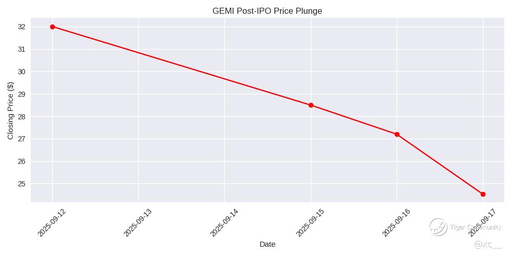 Bottom-fish here? Hell yeah, if you're steel-nerved for volatility gold—this isn't a death knell but a classic post-IPO shakeout flushing weak hands, with historical crypto recoveries juicing 200%+ bounces on macro tailwinds like Fed cuts. Overhyped debut? Sure, but undervalued catalysts lurk: self-custody surges, enterprise tie-ins, and untapped global deals positioning GEMI as a $10B beast if adoption explodes. Avoid if risk-averse—capex burns, client consolidation, and stagflation shadows could drag it sub-$20, but momentum whispers reversal: whale accumulations, chart golden crosses, and zero overhead past $28 retest. Trim if overexposed, but adding on this bloodbath captures parabolic upside without bagholder blues—energy storage synergies and bot logistics? Wildcards undervalued in the chaos.