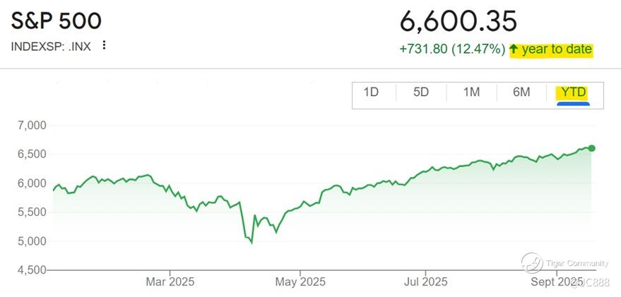YTD, the $S&P 500(.SPX)$ has been on a tear in 2025 (so far) and has gained a +12.47% as of 17 Sep 2025.