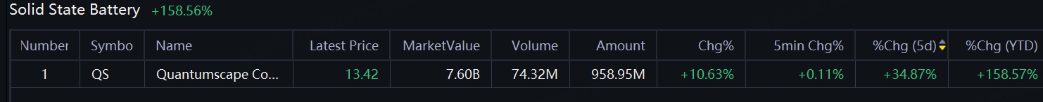 The best-performing concepts is Solid State Battery. Considering the different perceptions of the stock, this time TigerPicks chose $Quantumscape Corp.(QS)$ to have a fundamental highlight to help users understand it better.