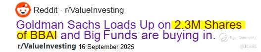 On 16 Sep 2025, it was reported that $Goldman Sachs(GS)$ has bought up a 5% stake of BBAI. (see below)