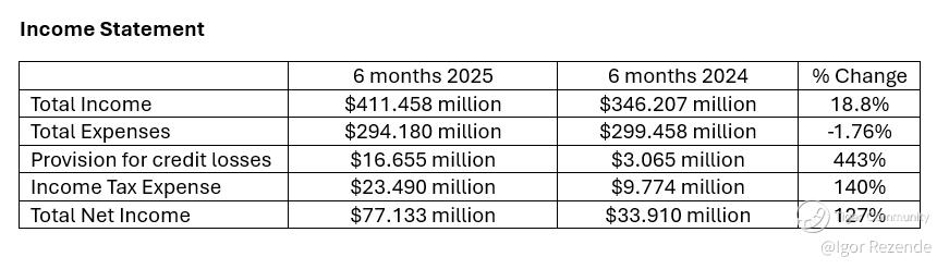 The increase in provision for credit losses was due to a downgrade in commercial real estate loans, which means more loans were judged to be riskier. The increase in classified loans (problematic loans) was from 2.26% in 2Q24 to 4.57% of total loans in 2Q25, nearly double in a year, which is a red flag.
