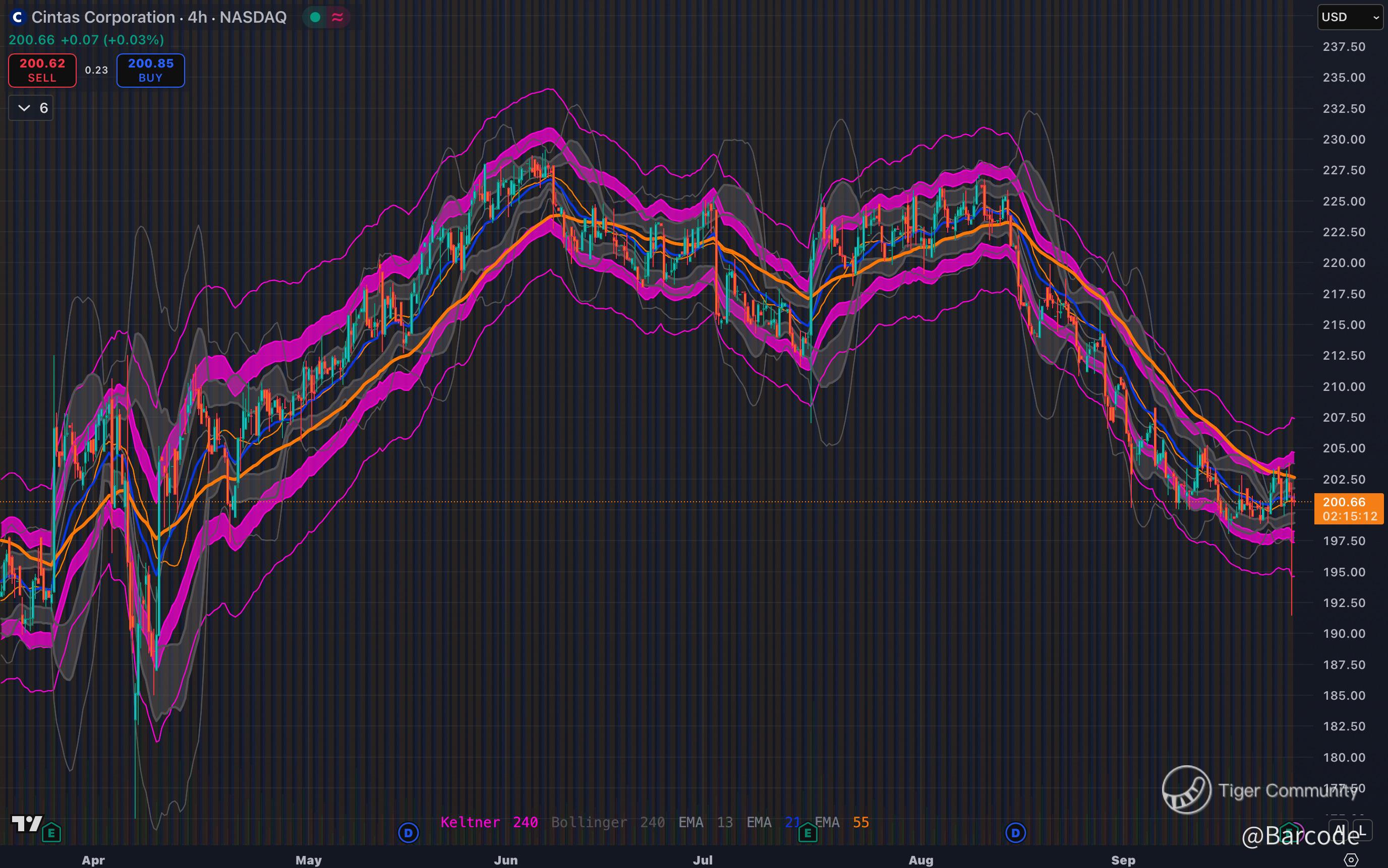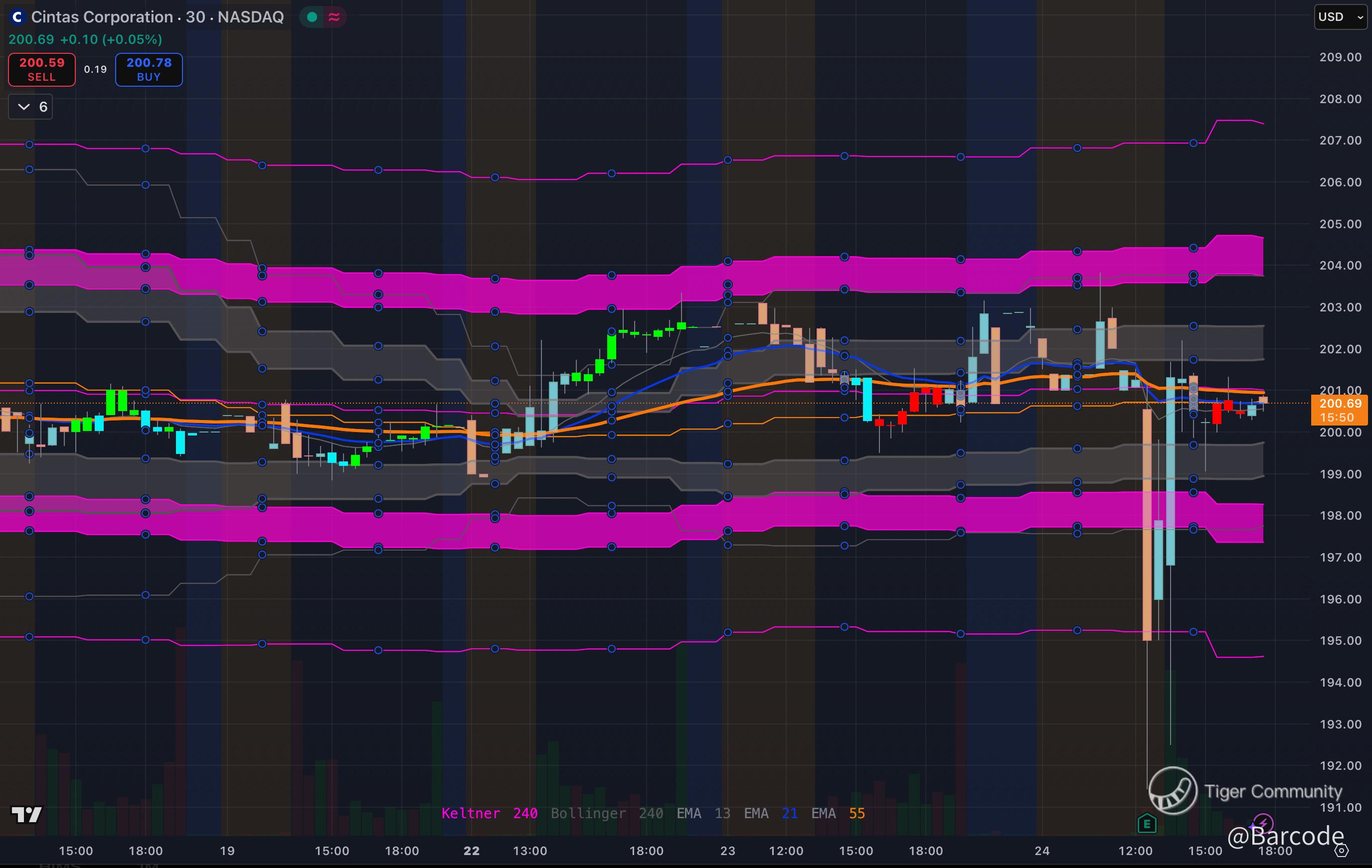 β’ $205.00β$207.00: Keltner/Bollinger confluence; breakout here confirms a shift from reaccumulation into upside momentum