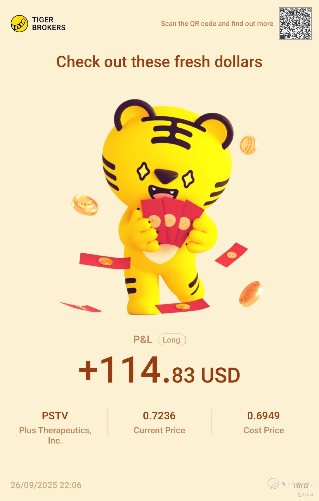 $Plus Therapeutics, Inc.(PSTV)$ I held this for so long thinking to sell it at a loss but thank god i held