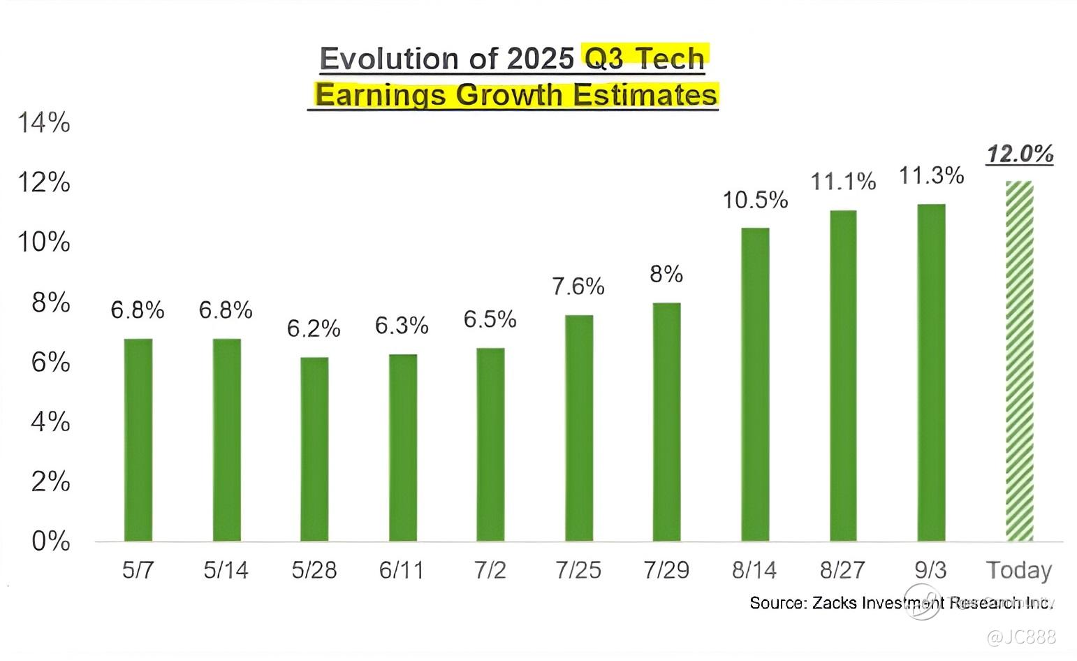 Q3 2025 Tech earnings growth estimates (bi-weekly)