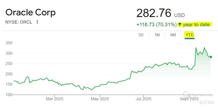 In contrast, ORCL shares have surged +70.31.65 YTD (as of 29 Sep 2025 closing) vs GOOG’s +28.19% YTD. (see below)