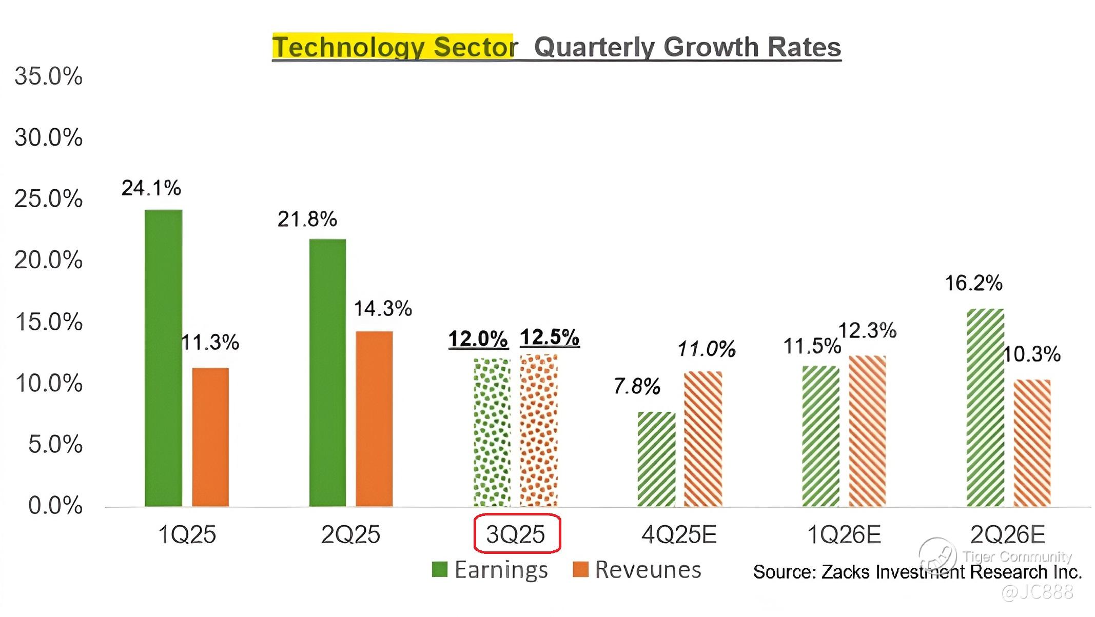The S&P 500 Technology sector is expected to see earnings grow by +12.0% and revenues by +12.5%.