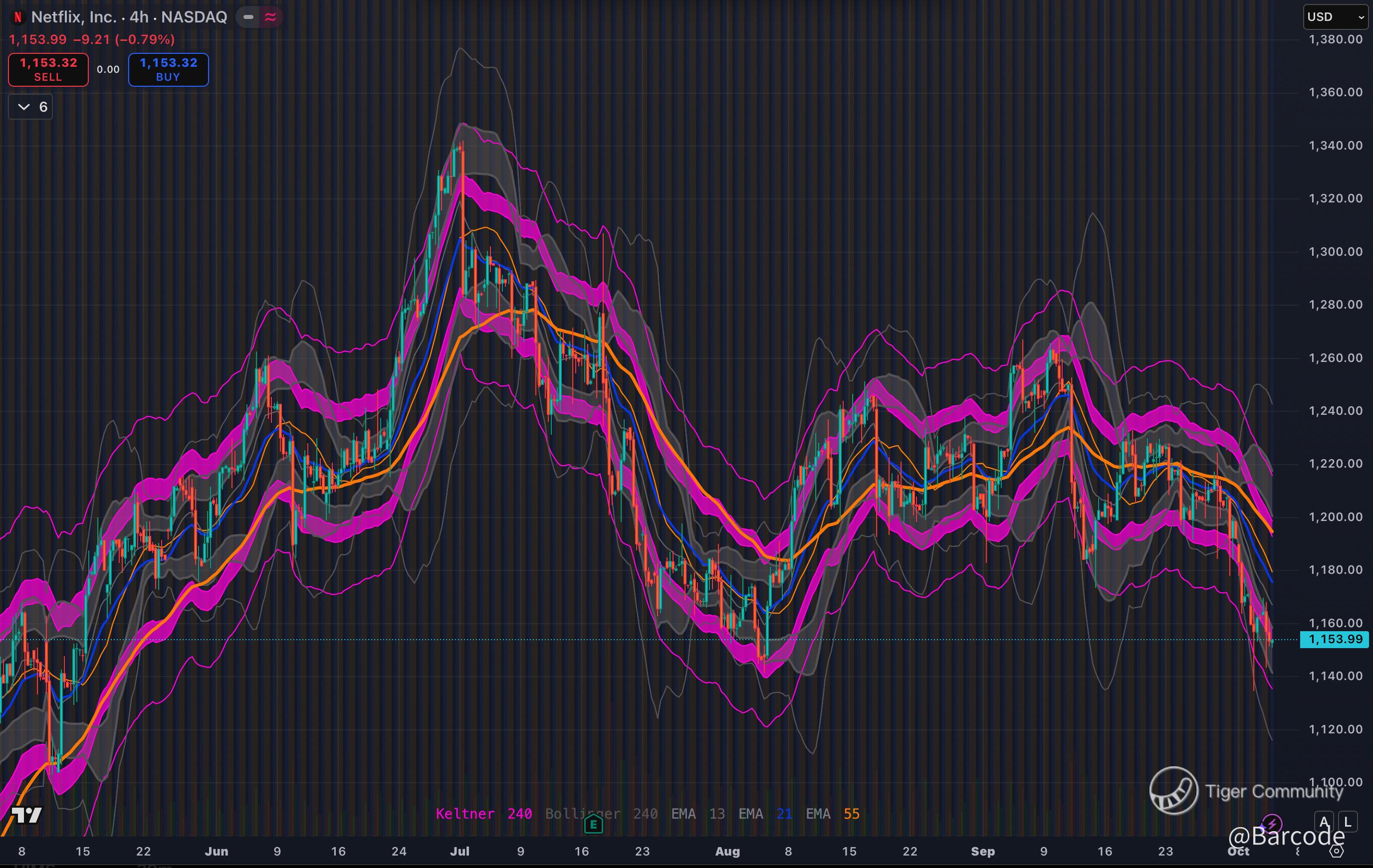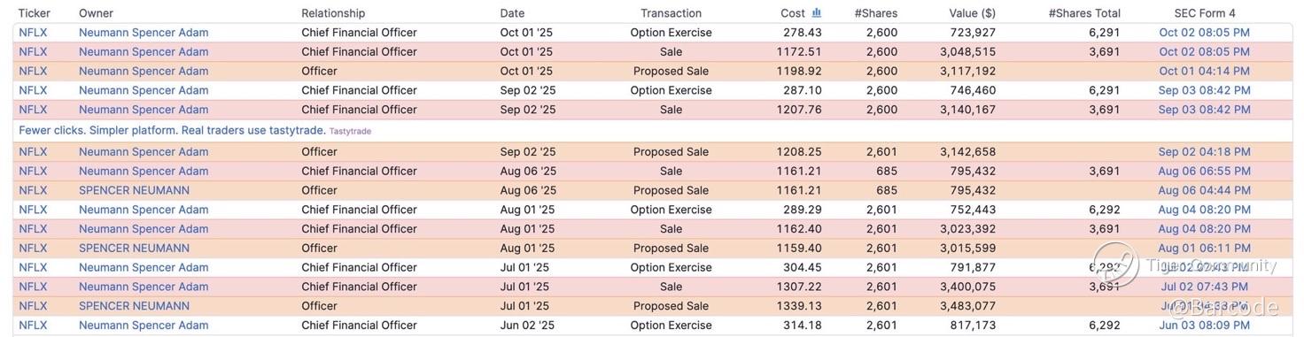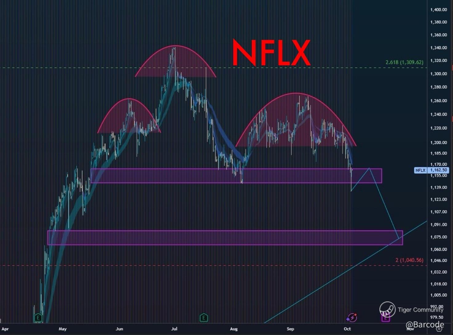 $Netflix(NFLX)$ $Invesco QQQ(QQQ)$ $Warner Bros. Discovery(WBD)$ I am watching one of the most compelling cultural, technical, and seasonal inflection points in $NFLX in years. The stock is sitting at a critical neckline, insider selling has accelerated, and Elon Musk has ignited a cultural firestorm that’s colliding with historically bullish October seasonality. This is not a routine pullback; it’s a high-stakes test of narrative versus structure.