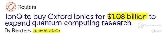On 9 Jun 2025, Maryland-based IonQ bought UK-based quantum computing startup Oxford Ionics in a roughly $1.1 billion deal.